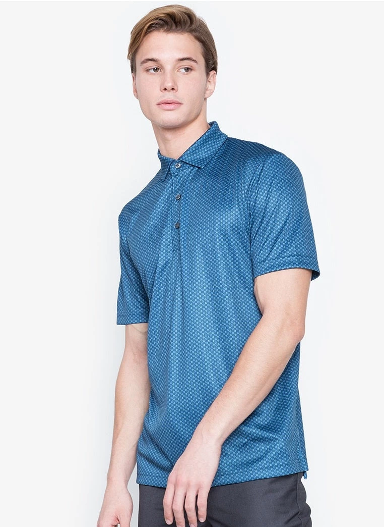 Show your true stripes in a the Jack Nicklaus Black Label Men’s All Over Mini Foulard Polo. The All Over print of this polo with three button placket and open sleeves create a corporate look that can be worn alone or paired with a jacket for meetings. Then move to the golf course and clubhouse with ease as the moisture wicking and UPF protection will make sure you stay comfortable and protected. Tag free means no annoyances as you play your best on the toughest greens.