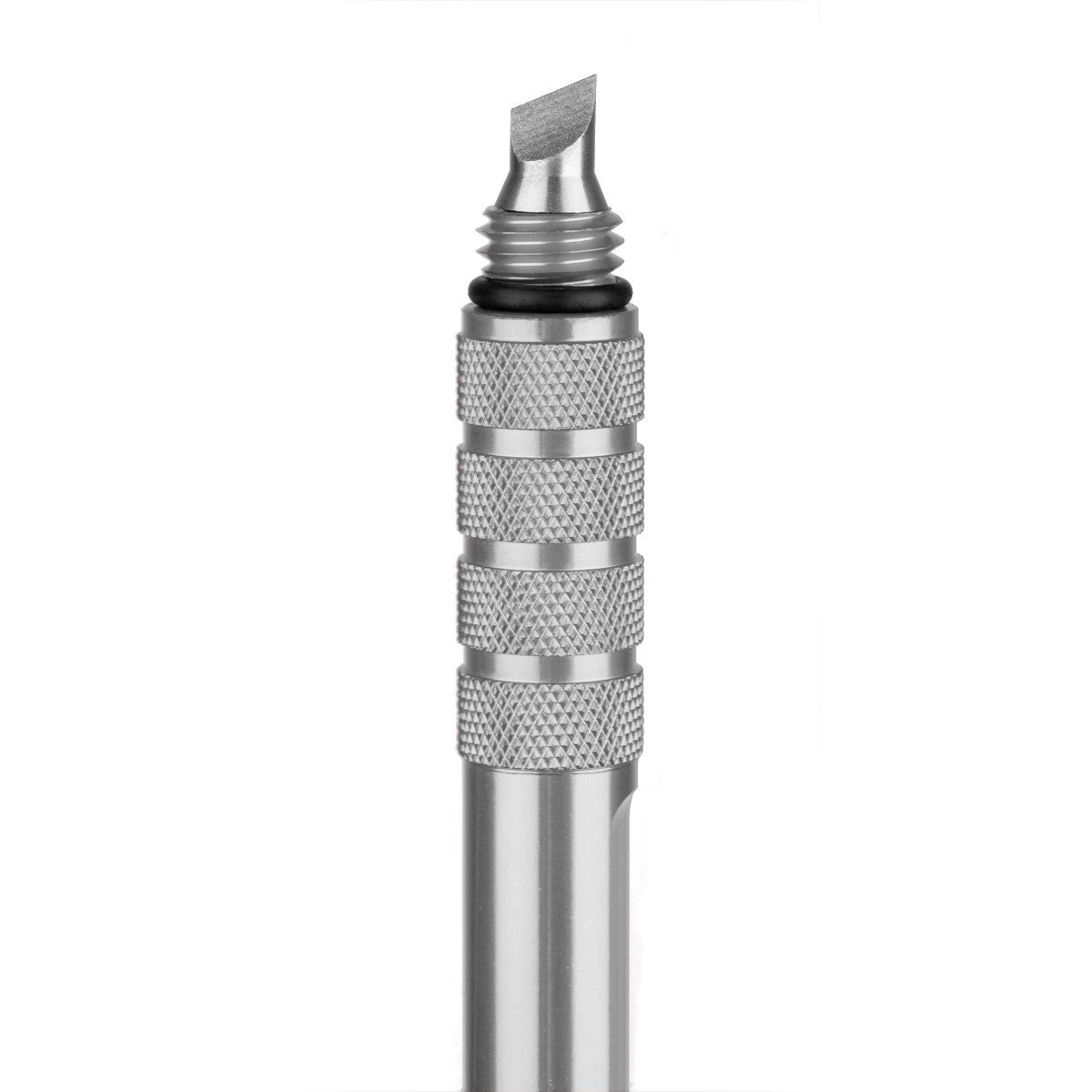 The Dynacraft Golf Groove Sharpener Tour Tool is designed to clean your club’s grooves to provide optimal back spin and control with your irons, wedge and utility clubs. The V-shaped cutting tip is made of high grade steel and most importantly angled to making easier to work the tool back and forth over the face of the club. The knurled handle and protective cap are aluminum for an ergonomic feel and slip resistant grip. Just run this tool down each groove 3 or 4 times and within minutes your worn grooves will be revitalized. The Dynacraft Golf Groove Sharpener Tour Tool comes in a protective storage case and easily fits in your golf bag or can be attached with the key chain included. It is available in five colors (Black, Blue, Gold, Red and Silver) and comes with six ball markers.
