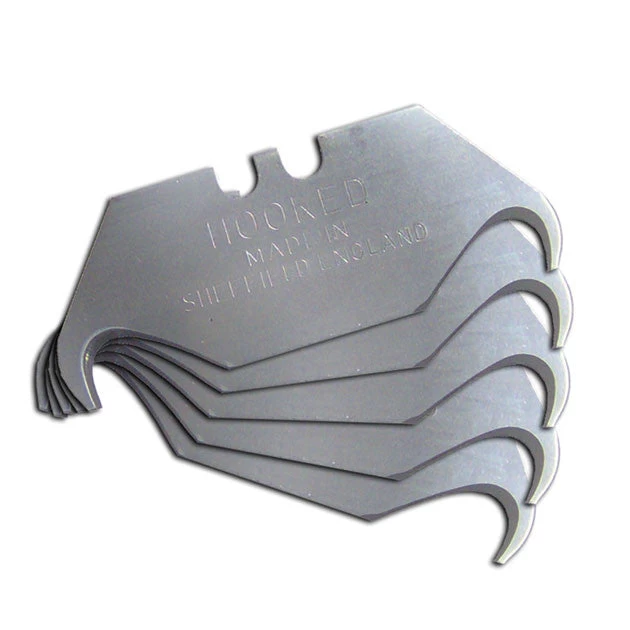 Combo knife takes either straight or hooked knife blades. Includes 2 heavy duty straight blades and 5 hook blades. The hook blades are ideal for cutting off grip safely even on graphite shafts.