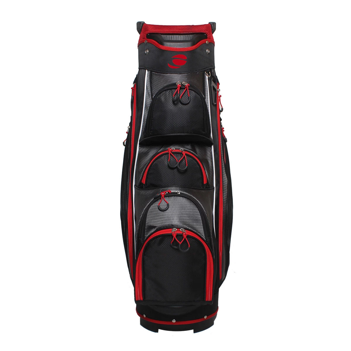 - Towel ring with Velcro glove attachment, umbrella holder, scorecard sleeve, and rain hood cover