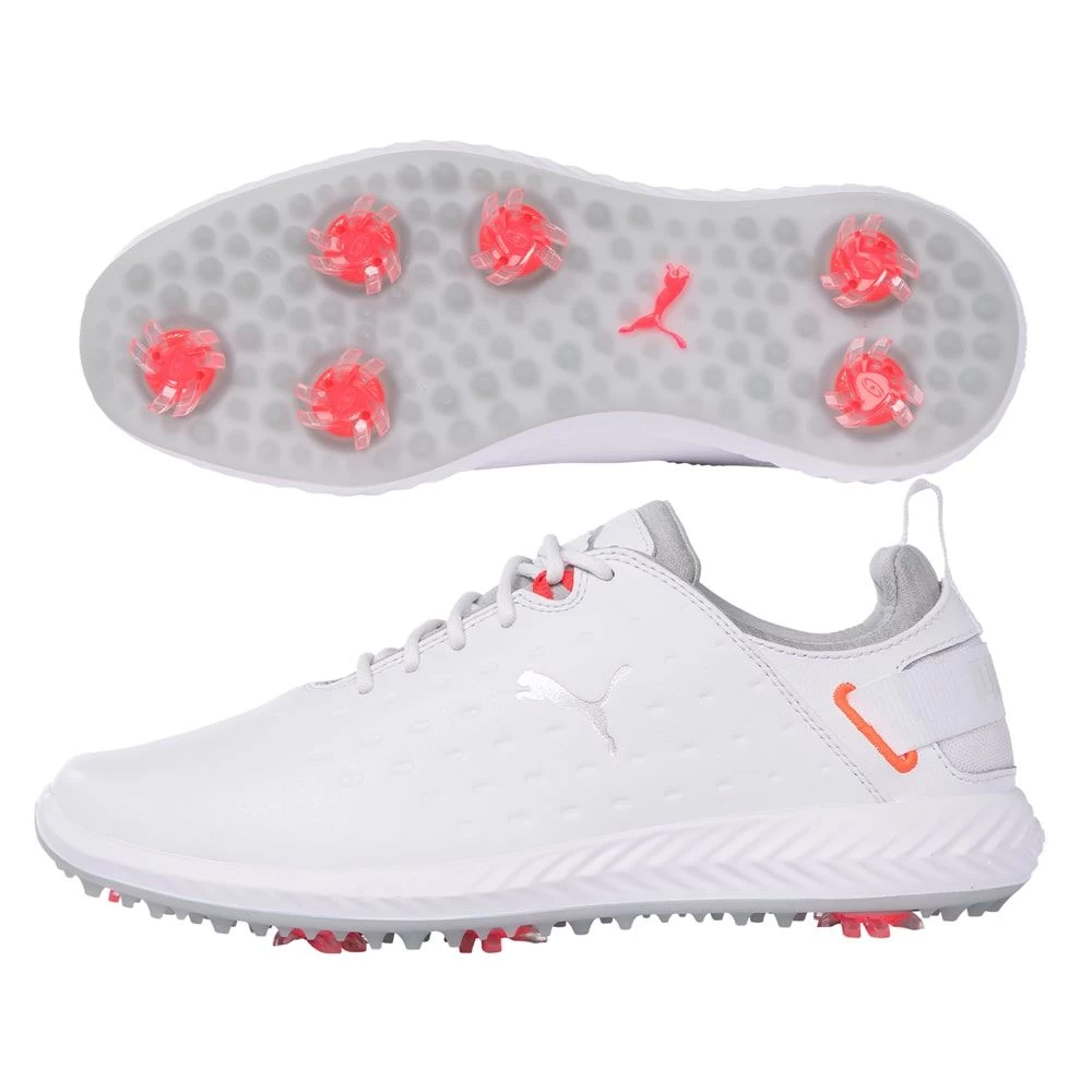 The FULL-GRAIN LEATHER upper provides unrivaled support and comfort that players at all skill levels are looking for, from the Tour professionals, to the weekend golfer. Full length IGNITE cushioning in the midsole and innovative PRO-FORM TPU Outsole combine with a FULL-GRAIN LEATHER upper creating a fashion-forward statement cleated shoe that is ready for 18 out of the box. This shoe delivers the perfect blend of PUMA style and performance for women who want to look better, feel better and play better.
