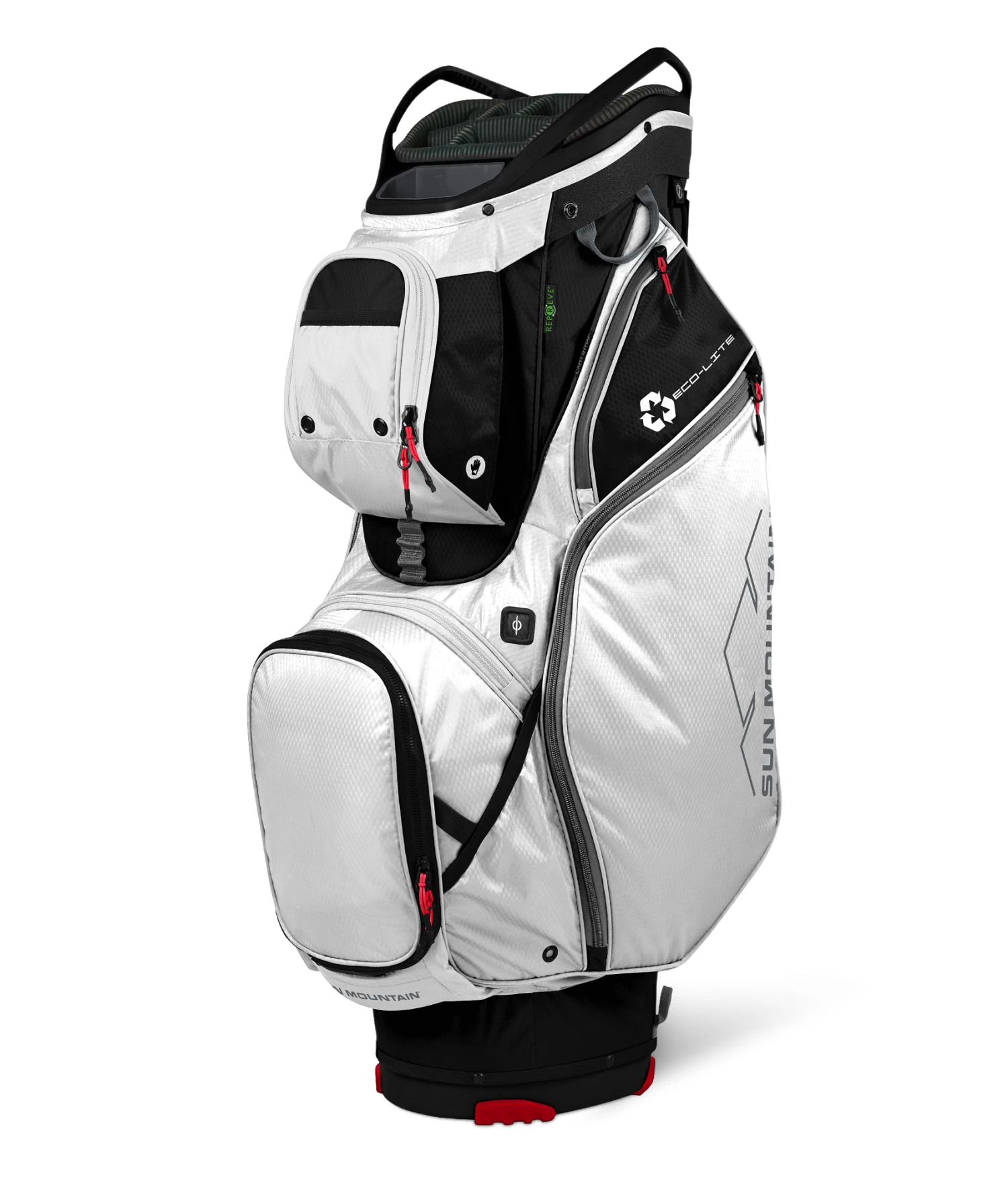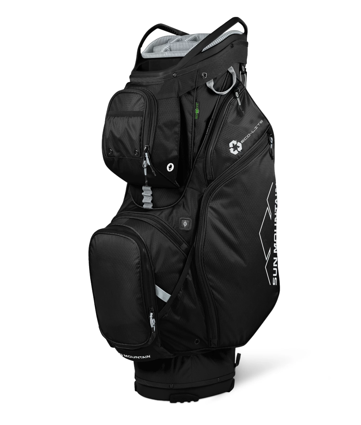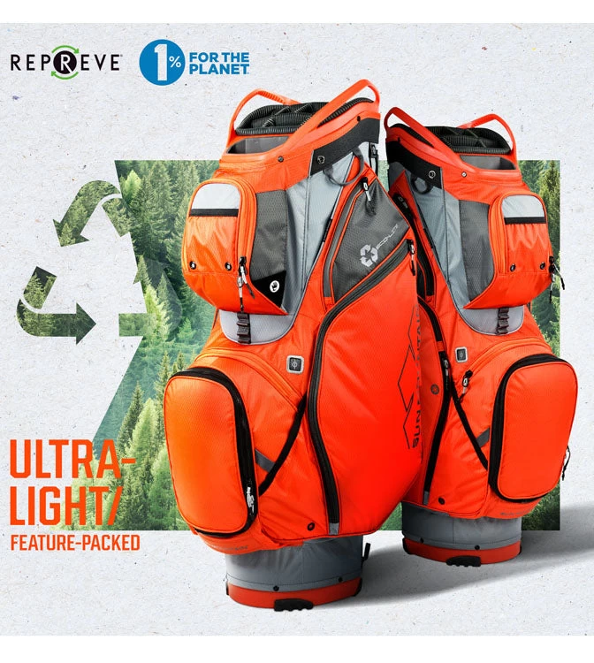 The Eco-Lite Cart Bag is a lightweight and feature-packed cart bag made with a material manufactured by Repreve®, a company who uses recycled plastic bottles to produce performance fabrics. Â