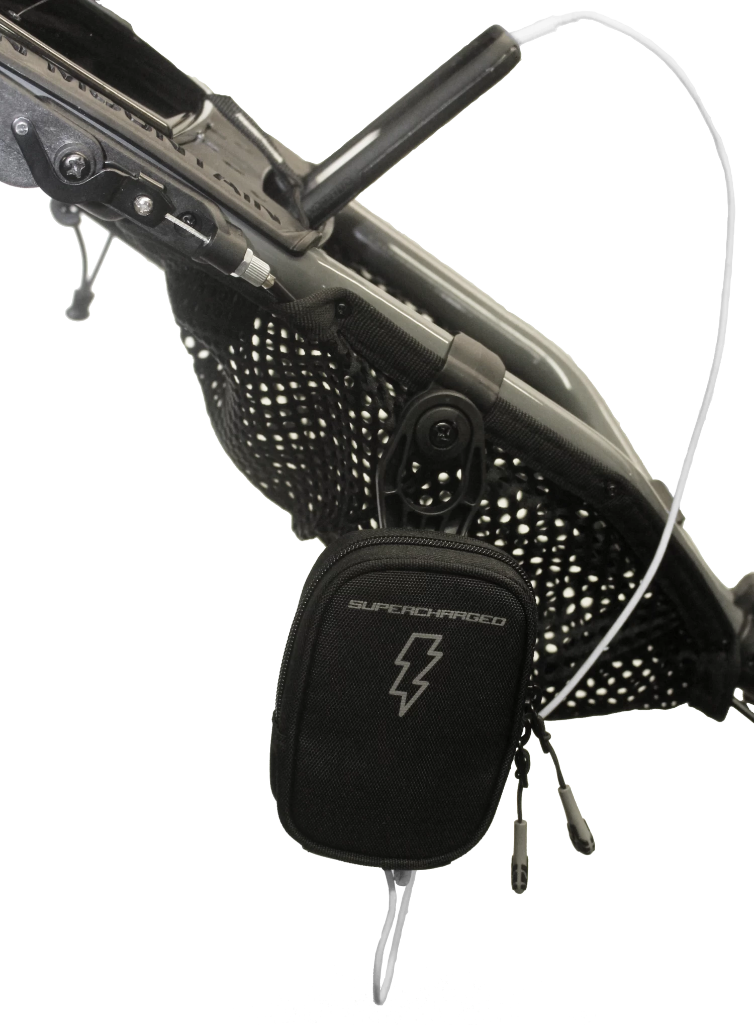 The Supercharged Pouch is a velour-lined pouch that attaches to your cart with an accessory knob. It comes complete with a Philips Power Bank 7800 mAh Lithium Ion Battery which will recharge your phone or other electronic devices or power your portable music speaker.