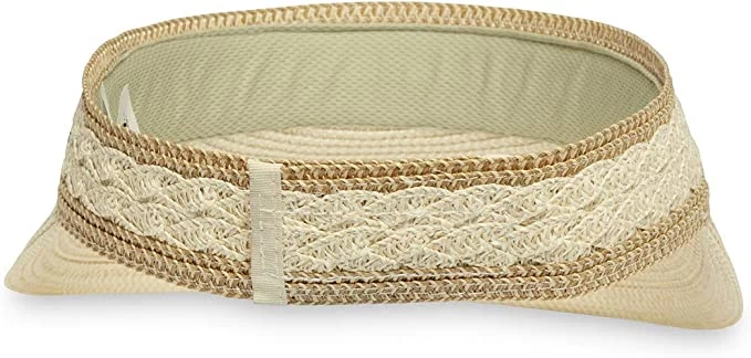 With a mid-size brim for great coverage and a textured paper/polyester braided weave, the Oceana Visor is the right choice for active women looking for a casual, stylish look. The comfortable wicking sweatband is made from 100% recycled bluesign® certified fabric. Adjustable hook and loop closure and sizing system help it fit just right. UPF 50+ sun protective on the brim only.
