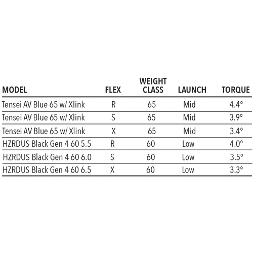 No Upcharge Custom Shaft Specs: