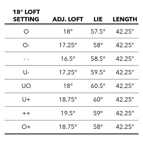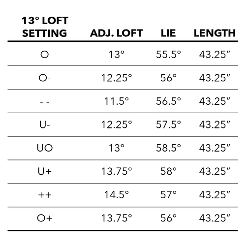 The adjustable hosel allows the user to adjust the loft +/- 1.5 degrees up or down.